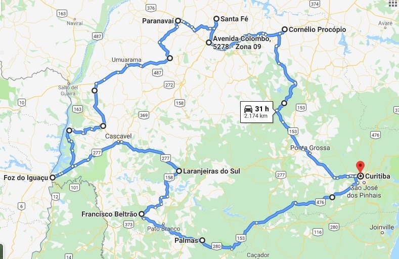 Minha meta de conquista final em quilometragem se encerra neste passeio de cerca de 2.500 km rodados pelo Estado do Paraná, entre irmãos, cunhadas, sobrinhos e amigos.